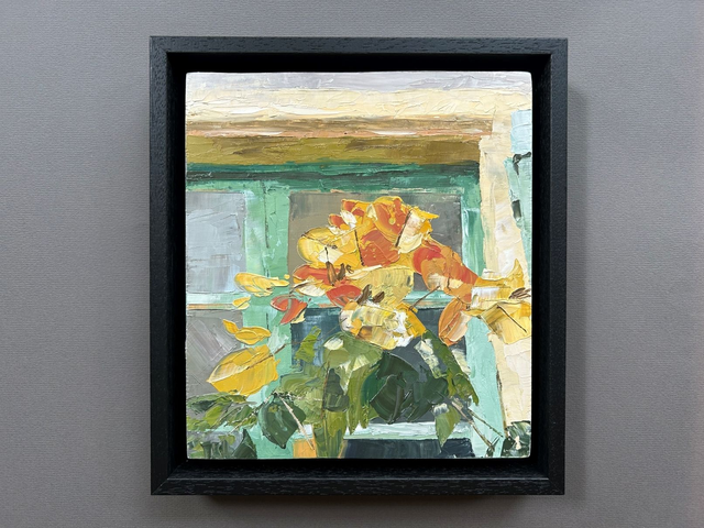 Original Oil Painting - Flowers in the Window, France (Framed)